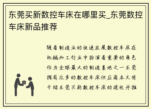 东莞买新数控车床在哪里买_东莞数控车床新品推荐