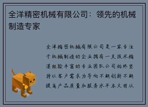 全洋精密机械有限公司:领先的机械制造专家